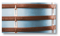 Spacer tape made of stainless steel 1.4301 for routing heating tapes and heating cables on tanks. The spacer tape can be attached by spot- welding or with straps.