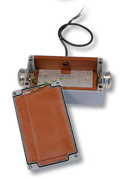 Housing with integrated heater for loss-free thermal connection to analysis lines made with robust metal casing.