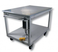 Various materials, such as plastics and metals can be kept or heated to an even temperature on the mobile heating/cooling table. The temperature of the aluminium heating plate is continuously adjustable up to 100°C using an built-in electronic controller. The special HTI16 integral controller detects temperature across the entire surface of the heat plate, thereby ensuring a much more uniform surface temperature than would be possible with conventional sensor control.
