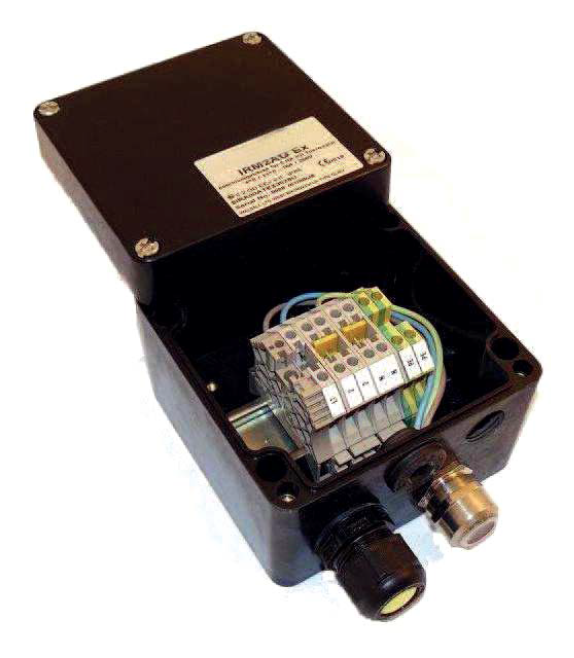 The thermostat is cast into an M20 screw connection, which is installed in a glass-fibre reinforced polyester housing. Up to two heating circuits can be connected in this pre-wired housing.